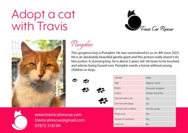 Handsome boy Thomas was handed in to Travis Cat Rescue after his owners moved away. Thomas was taken to our Vet the next day for a check-up and was snapped up by a member of staff at our Vet practice! Who can blame them? He's a beautiful boy! He has two Silver Tabby "brothers" to hang out with now. He's very happy in his new home and spoilt rotten!